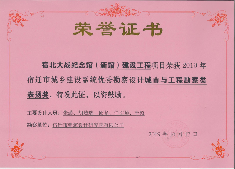2、宿北大戰(zhàn)紀念館(新館)建設(shè)工程 城市與工程勘察類表揚獎