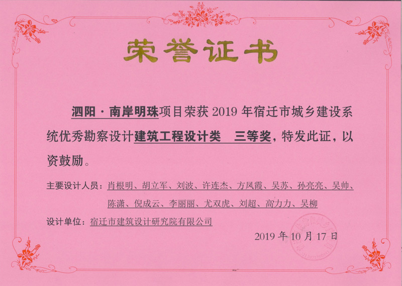 1、泗陽 南岸明珠 榮獲建筑工程設(shè)計類 三等獎
