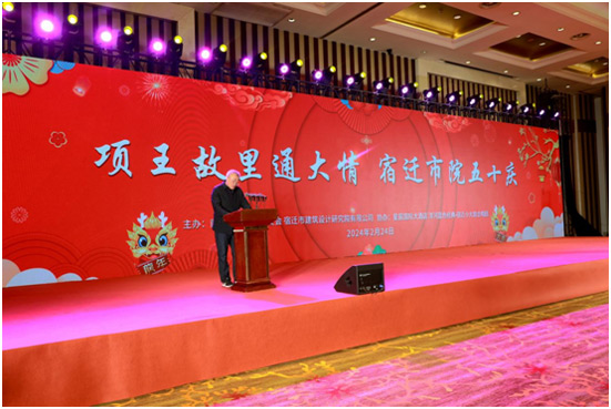 2024年2月4日,農(nóng)歷正月十五(元宵節(jié)),我院舉辦宿遷市建筑設計研究院五十周年慶典活動。湖濱新區(qū)黨工委副書記、管委會主任陳磊出席活動并致辭,活動由我院董事長兼院長胡立軍主持。